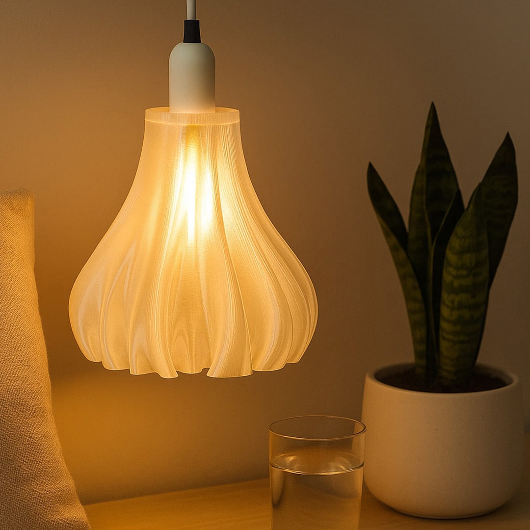 This pendant light echoes the gentle curl of a blooming flower. With its abstract, organic shell, Bloom brings softness and form to overhead lighting. Ideal for bedside tables, café ambience, or reading corners. Optimized for accent lighting in residential and boutique commercial spaces.