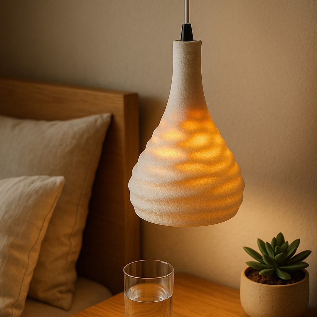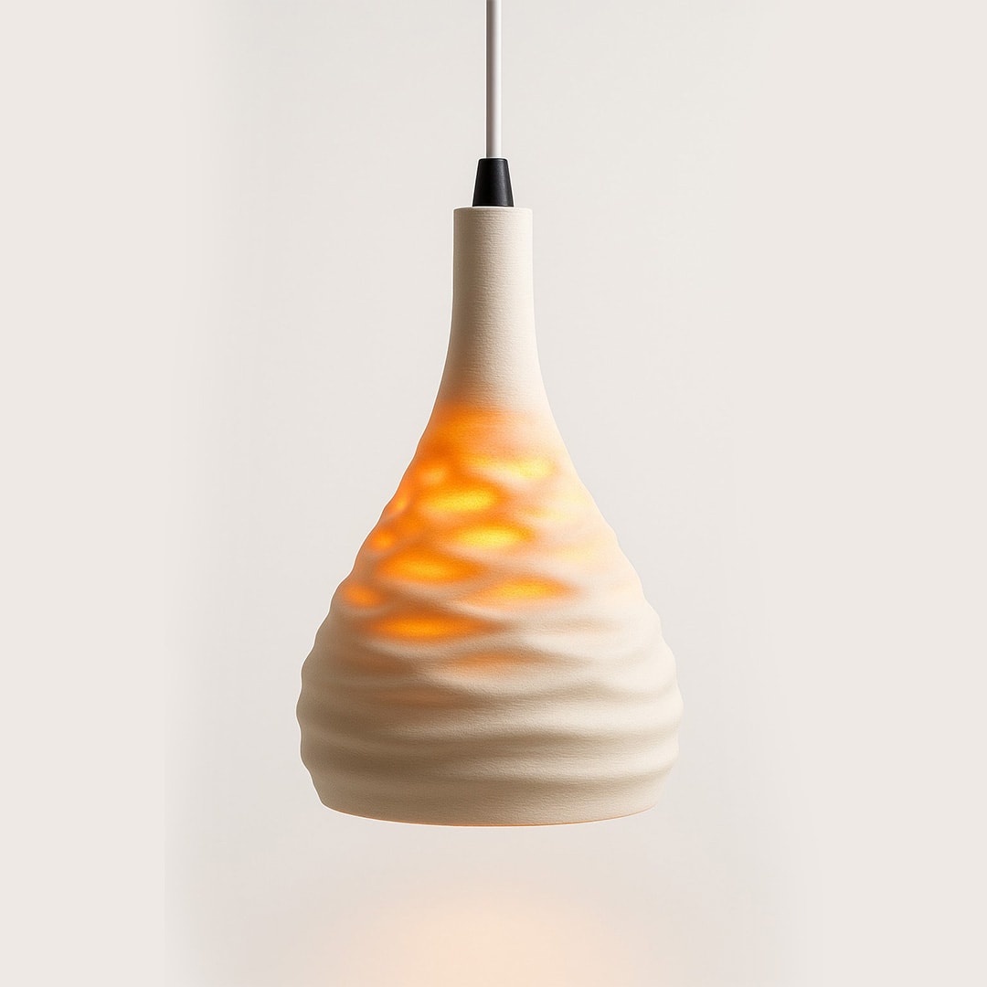 This pendent light captures the beauty of imperfection with a form that appears gently compressed from the base, as if bearing a graceful weight. Despite its subtle distortion, it stands tall and poised — a sculptural balance of tension and elegance.