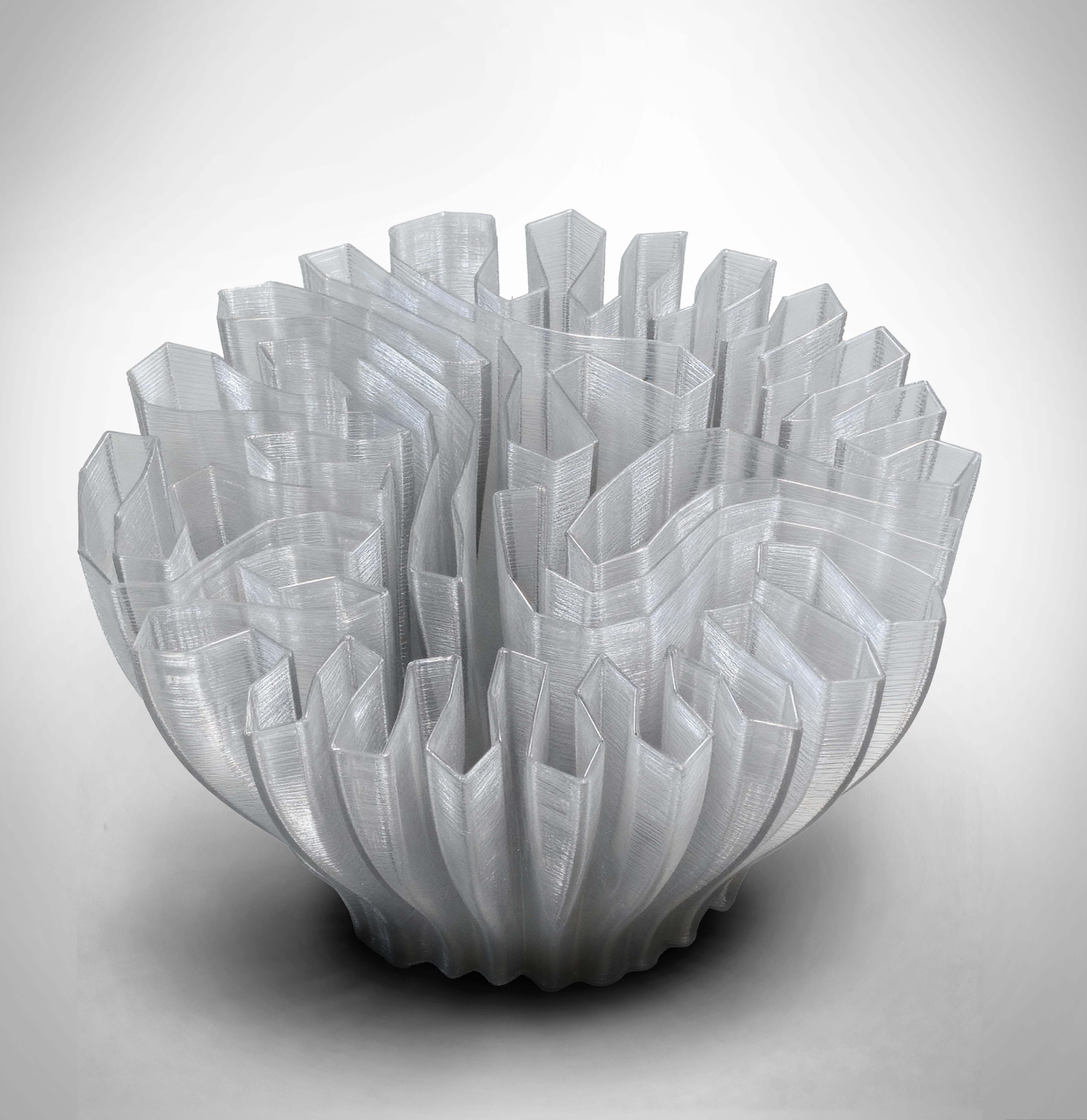 Luma brings lightness and rhythm to any space with its fluid, wavelike base that seems to ripple upward in motion. 3D printed with precision, the sculptural structure supports a minimalist glass top, creating a harmonious blend of texture and transparency. Elegant yet understated, Luma is perfect as a side table or standalone art piece in refined interiors.