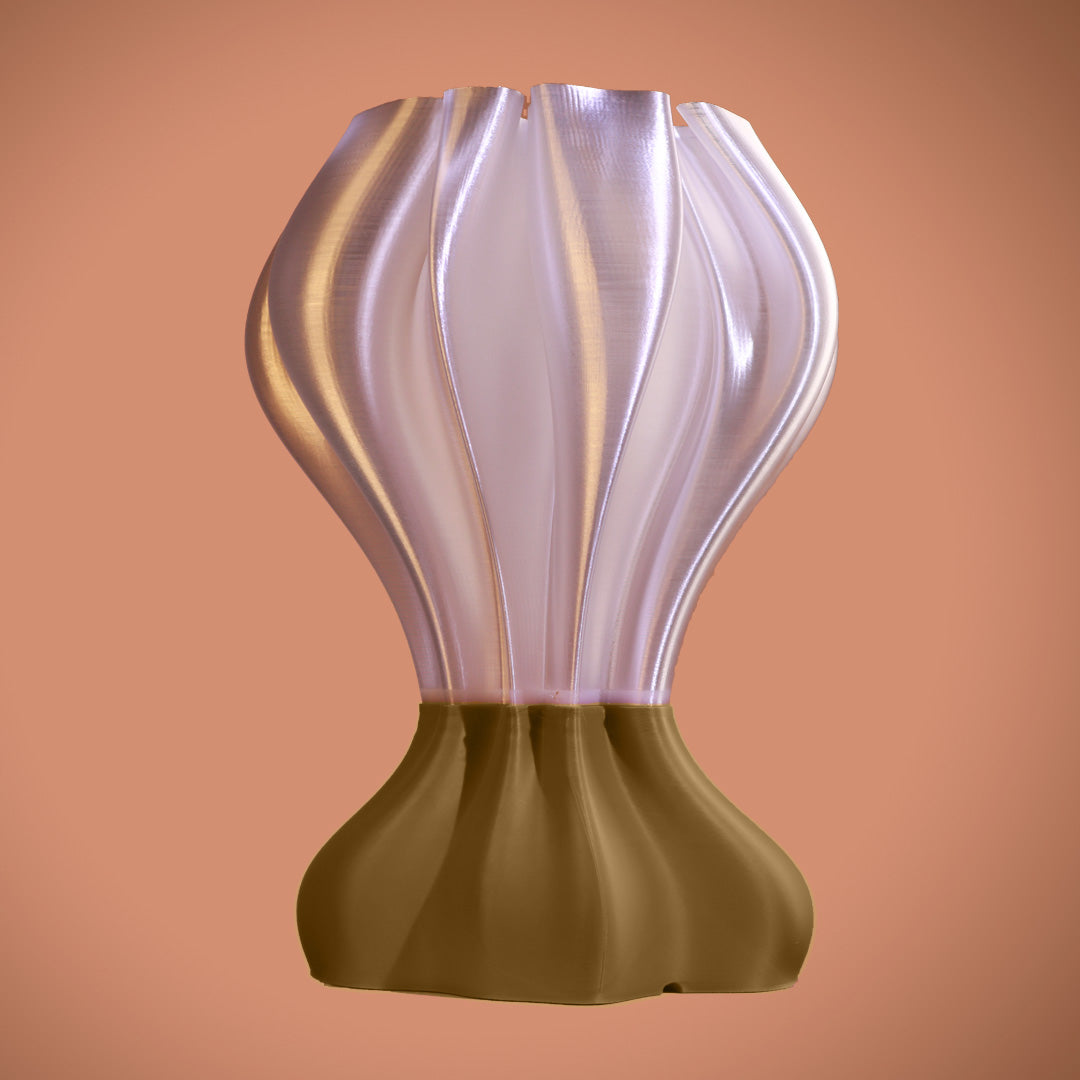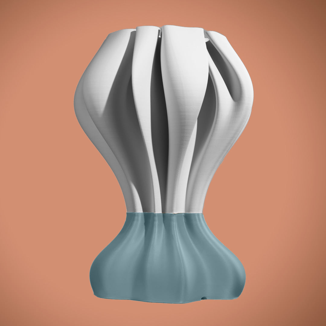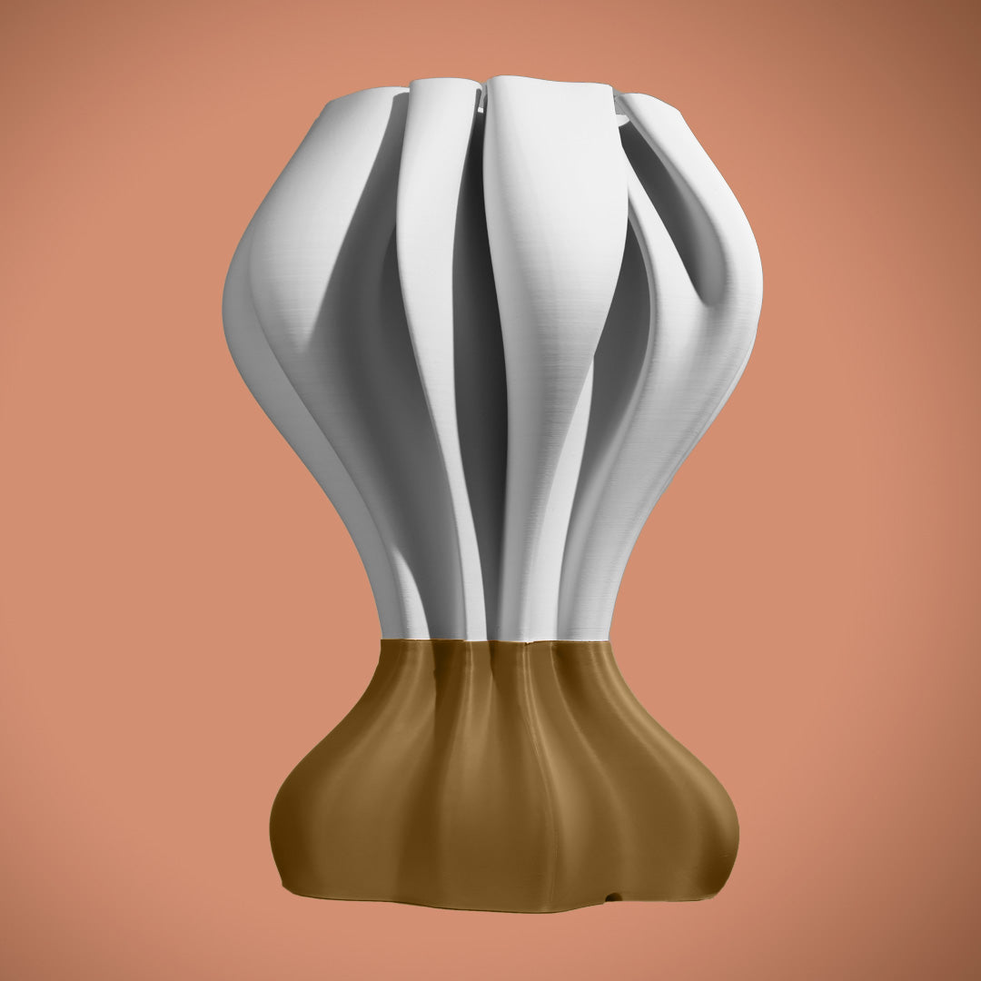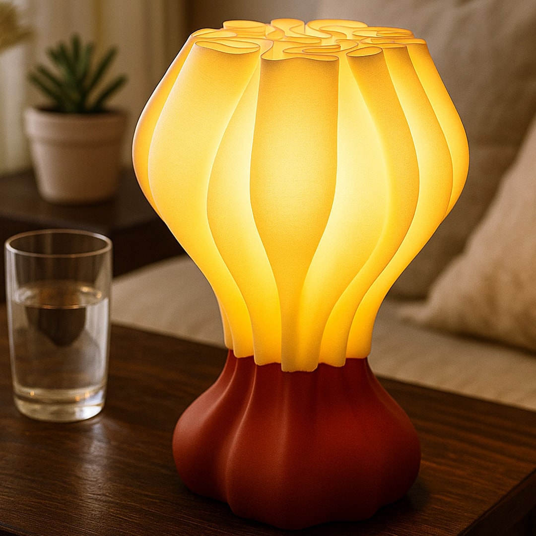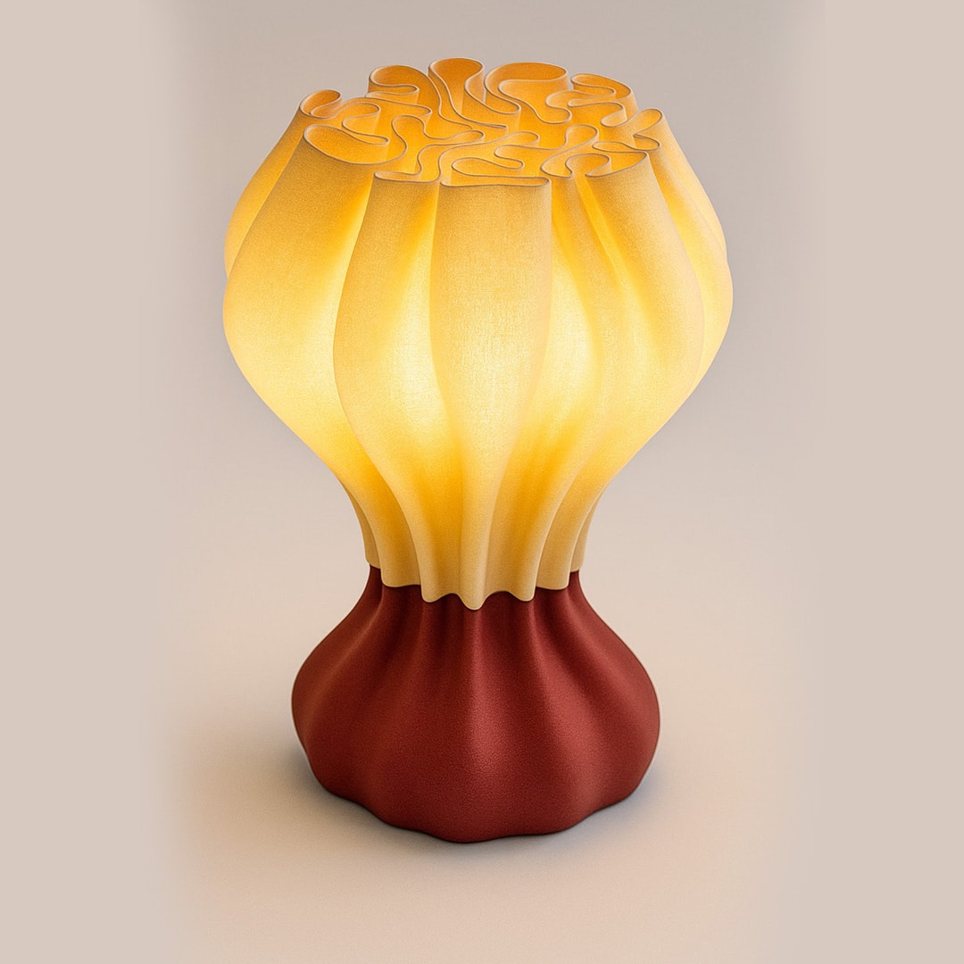 Inspired by a flower curled in mid-bloom, this table lamp blends sculpture with soft lighting. The flowing form unites the base and shade into a single organic silhouette, 3D printed with elegant precision. A subtle statement piece for modern interiors.