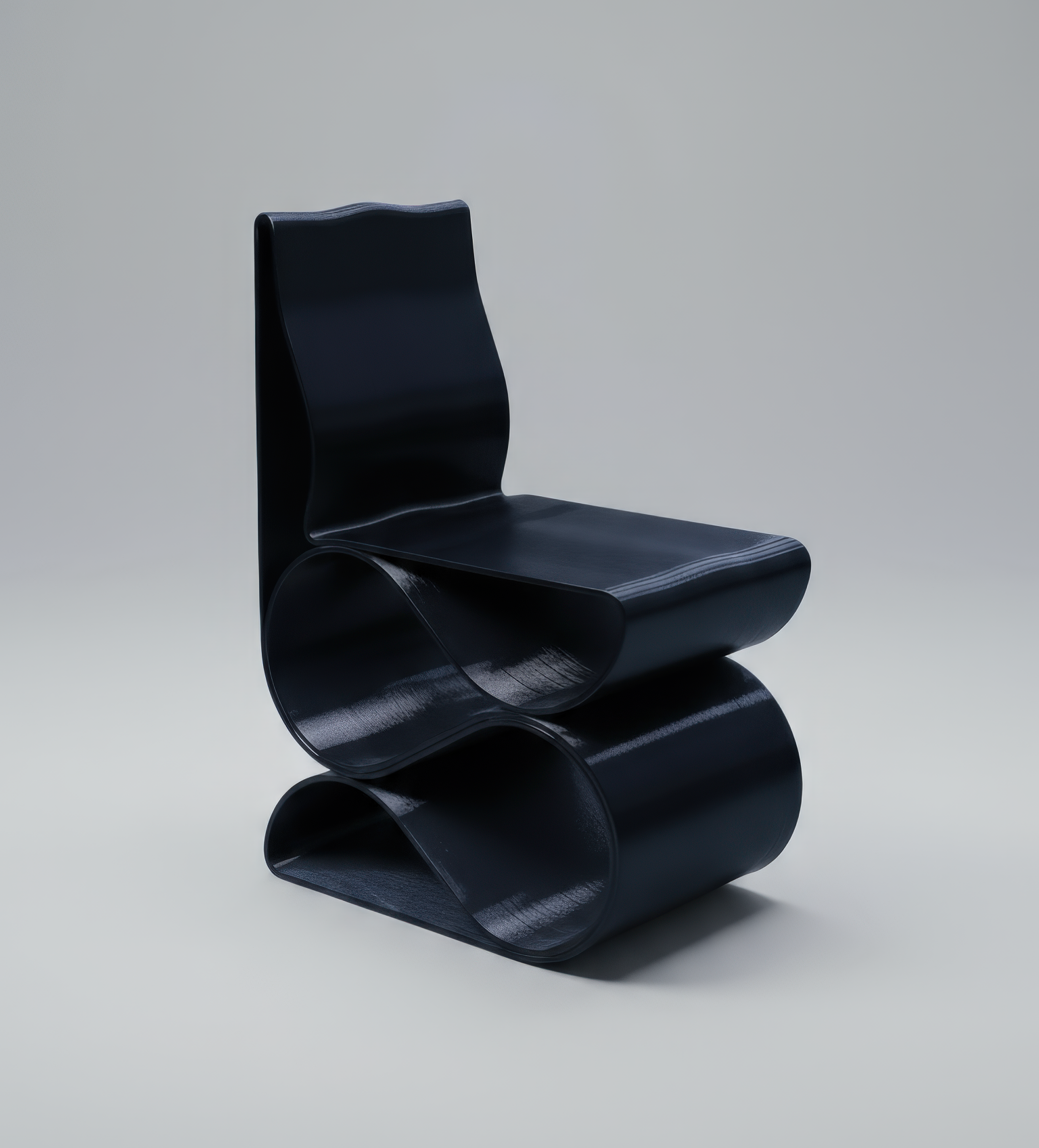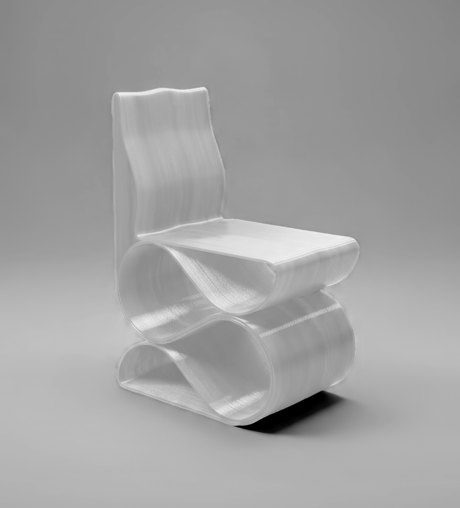 Ribbon is a sculptural chair that flows like a ribbon in motion. With its continuous, folded form and ribbed inner architecture, this 3D printed piece merges strength with visual lightness. Its sinuous curves cradle the body while making a bold design statement. Both functional and artistic, Velo is a refined centerpiece for modern, expressive interiors.