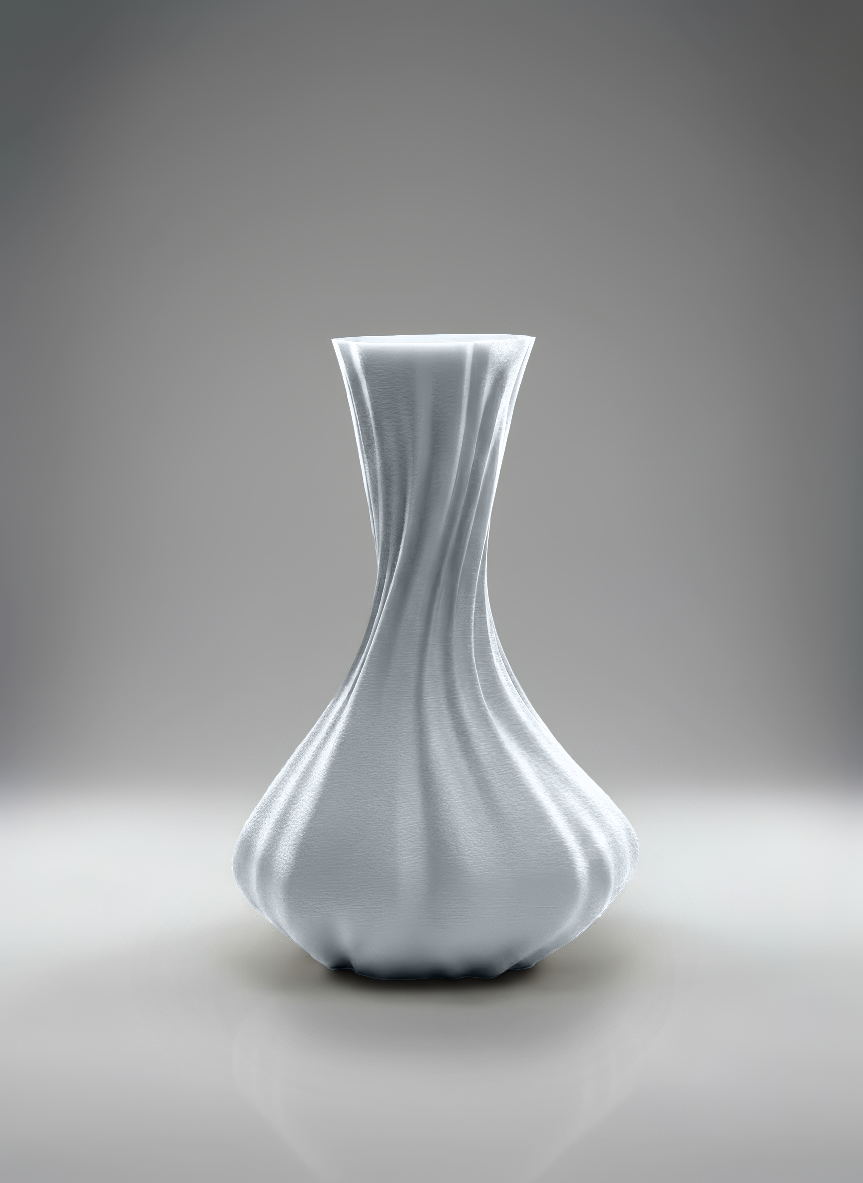 This version of the vase evokes the moment a soft cloth touches the ground, its folds pooling with quiet elegance. Drape draws from classical drapery, reimagined through 3D printing to capture motion in stillness. A striking piece that brings sculptural grace to contemporary interiors.